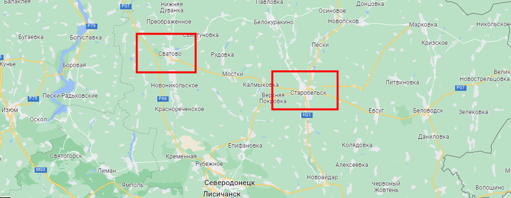 Части РФ/ЛНР заняли город и расположенное северо-восточнее Сватово, при этом местные проукраинские активисты попытались блокировать колонну техники.