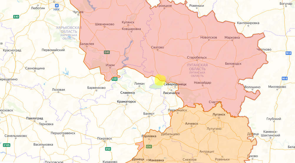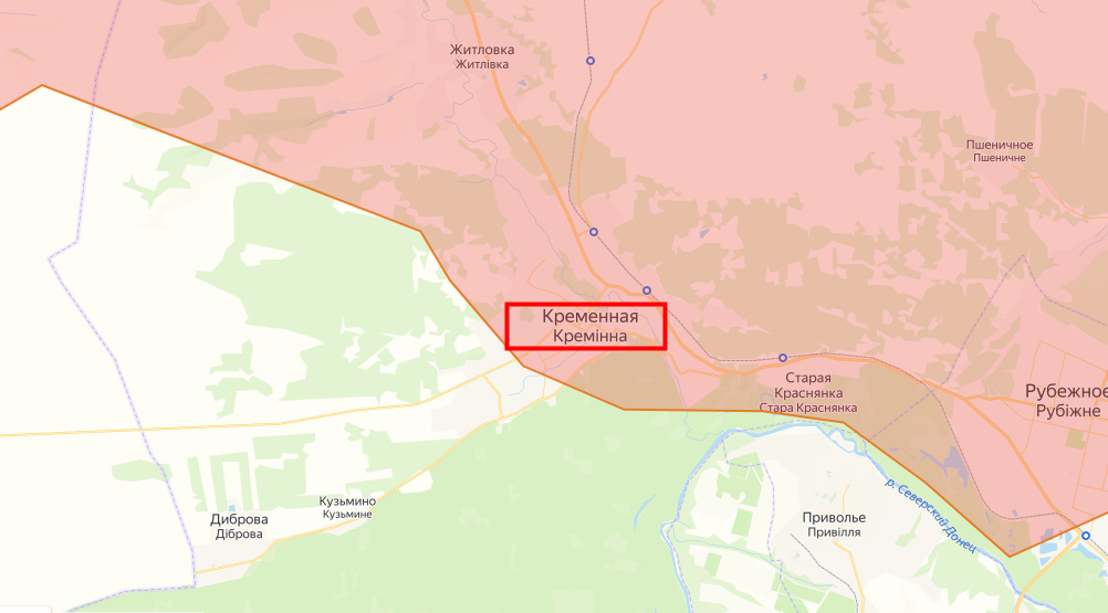 Обратите внимание на карту в большем масштабе, где расположена Кременная: это не крышка, а скорее дно котла. Т е речь идет не о охвате, а о выдавливании противника, и максимум перспектив здесь — обойти с запада Северодонецко-Лисичанскую агломерацию, что, видимо, и есть основной целью.