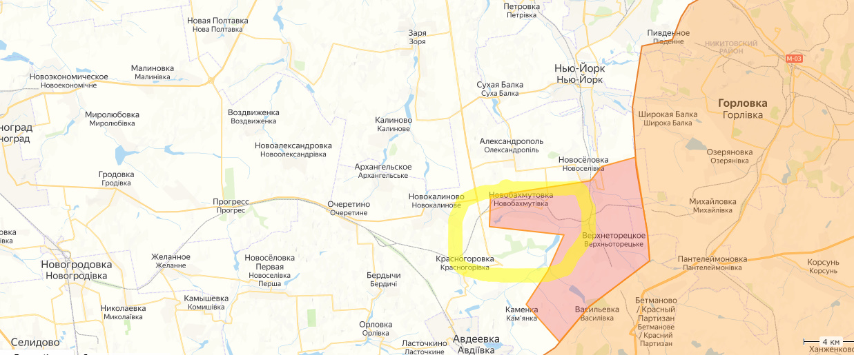По проросс источникам ничего нет, проукр отмечают удар на север в обход Новгородского (Нью-Йорка), но тоже в направлении Константиновки.
