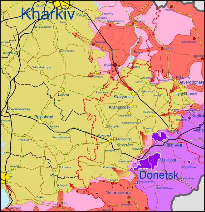 Котел это очень условно, как писал вчера, окружать его и не собираются, однако после соединения харьковской группировки ВС РФ и ЛНР дело пошло активнее, хотя бы и не окружением, а выдавливанием.