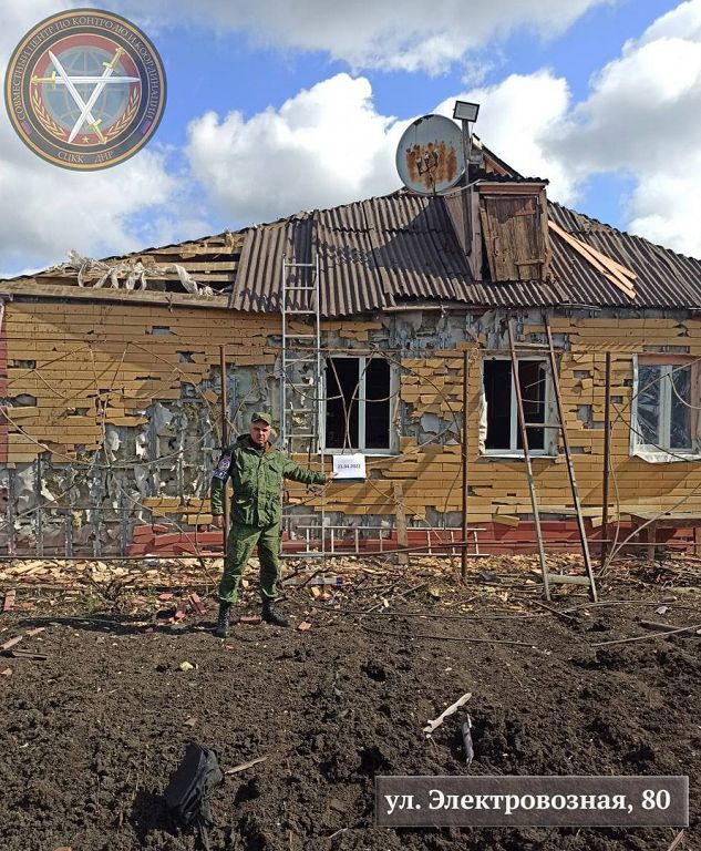 Здесь отмечен непонятный прилет. От линии фронта, т е для артиллерии вроде бы далековато. И почему то пишут, что это центр города, хотя на картинке посадка с полями. В общем, неясно.