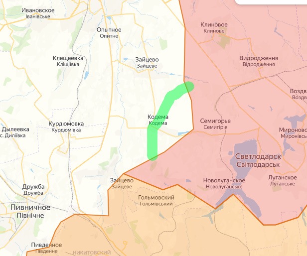 По Невельскому, кстати, разгоняется в укрсегменте соцсетей зрада про его оставление, но днровские источники пока молчат. По Кодеме вышло видеоподтверждение занятия населенного пункта, но отмечается, что не полностью.