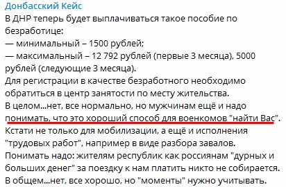 Она продолжается под видом поиска работников. В местной сети Феникс постоянно идут рассылки СМС вида «требуются на работу». Правда, через несколько дней работы есть вероятность попасть на патруль комендачей и «работа» плавно перетекает в могилизацию, потери на фронте никто не отменял, соответственно, а пополнение нужно всегда.