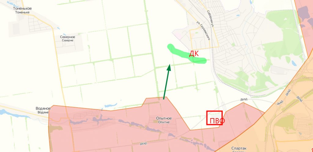 Украинскую атаку с помощью арты отбили, более того, из за какой то несогласованности с укрстороны (кто-то не подтянулся вовремя или укркомандиру приспичило выебнуться, хз…) днры неожиданно даже для себя смогли продвинутся к Авдеевке по кратчайшему пути из Опытного, параллельно бывшей линии трамвая.