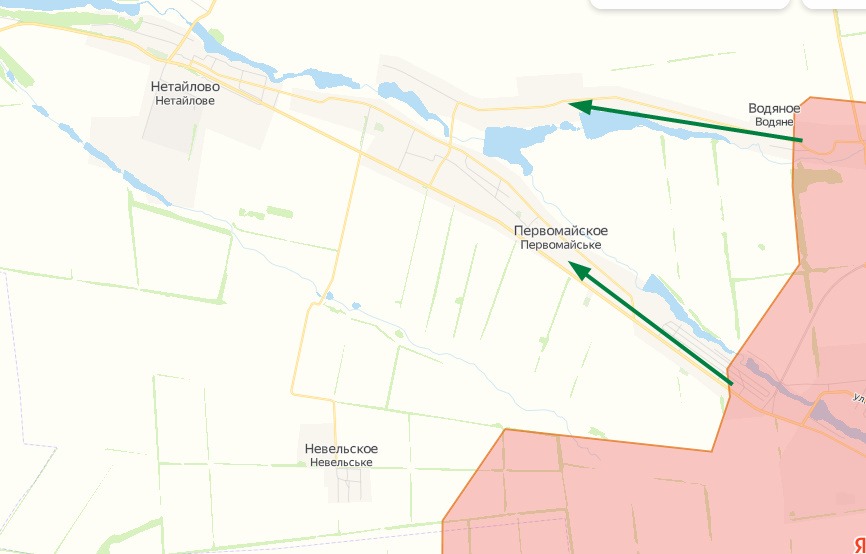 Также прошли сообщения о продвижении частей Днр+Рф в районе Водино+Первомайское, по самым радикальным оценкам, Ук выбиты в Нетайлово. Однако достоверность этих сообщений под вопросом.
