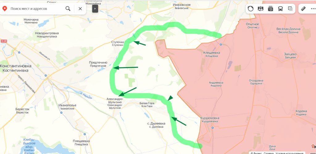 Судя по сводкам с укрстороны, они вышли к Предтечино, Александро-Шультино, сегодня сообщили о подходе к НП Ступочки, а части Днр продвинулись к Белой Горе. Фактически создана угроза снабжению группировке Всу в Артемовске, т к трасса Константиновка — Часов Яр — Артемовск на грани огневого контроля.