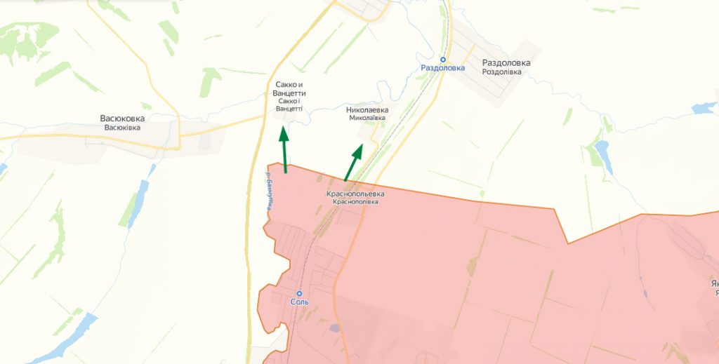 Еще один потенциально интересный участок на северном фасе вагнеровского выступа. Сегодня прошло сообщение о попытках штурма поселка Сакко и Ванцетти и соседней Николаевки. Первый критичен для устойчивости украинской обороны, с его взятием получается выход на еще один оперативный простор с веером возможностей, от наступления на Северск до наступления на Славянск. Но, пожалуй, самое опасное для Ук — выход во фланг её группировки, пытающейся атаковать Кременную.