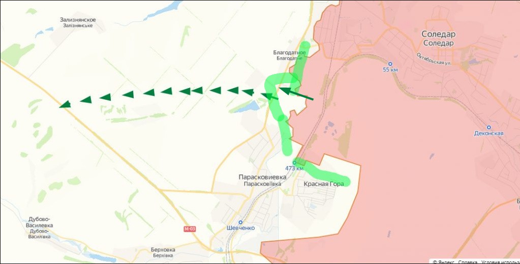 Помимо боев в самом Артемовске, наиболее интенсивные сражения отмечаются в Благодатном, Парасковиевке и Красной Горе. С последней понятно, этот выступ сковывает крупные силы Вагнера, которые командирам хотелось бы высвободить. А прорыв между первыми двумя НП дал бы вагнеровцам возможность выхода на относительно незаселенную местность с перспективой обхода Бахмута с севера и перерезания трассы на Славянск. И в отдаленной перспективе — окружения Артемовска.
