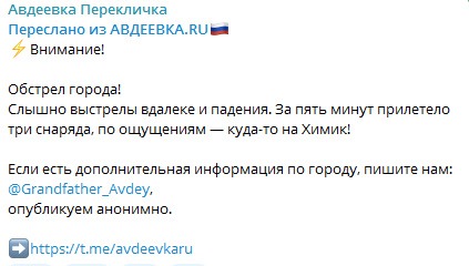 Из самой Авдеевки пишут, летело к ним в основном по территории АКХЗ (ранее сообщалось о скоплении укрподразделений на территории завода и изгнании местных жителей), однако несколько снарядов прилетело и по жилым кварталам.