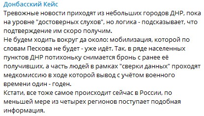 Фактически, прогнозы оправдались, пока в самой России маховик могилизации раскручивается, в Донбассе она уже снова началась.