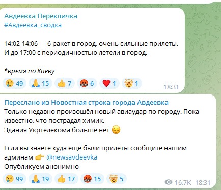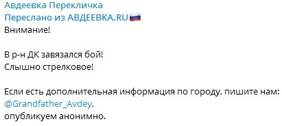 18.56 Побахивания возобновились. Из самой Авдеевки пишут о стрелкотне в стороне Химика.