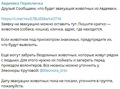 Волонтеры возобновили эвакуацию домашних и бездомных животных, им хуже всего, и в отличие от людей у них выбора особо и нет. Люди уезжали и ранее, мало кто забирал с собой животину, оставляя или под присмотр знакомых, или просто оставляя…