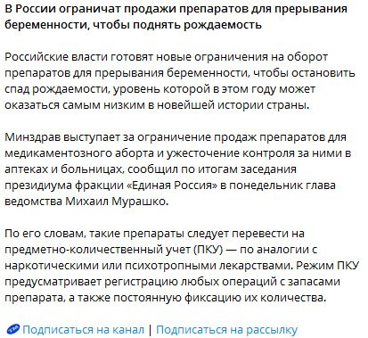 Начался очередной виток истерии с заявления М. Мурашко, он осудил женщин за нежелание рожать детей в первую очередь: