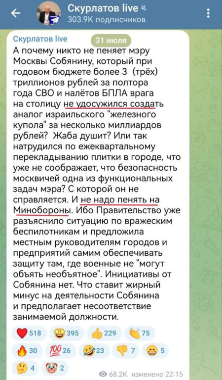 Действительно, почему мэр Москвы не создал свою частную армию, с ПВО и системой воздушного наблюдения?