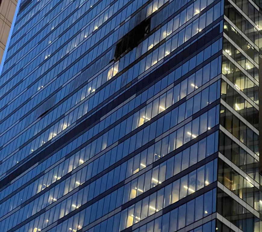 ⚠️50-этажное здание «IQ-квартал» уже второй раз испытало на себе такую атаку; удар на этот раз пришелся в помещения Минэка на 21 этаже;