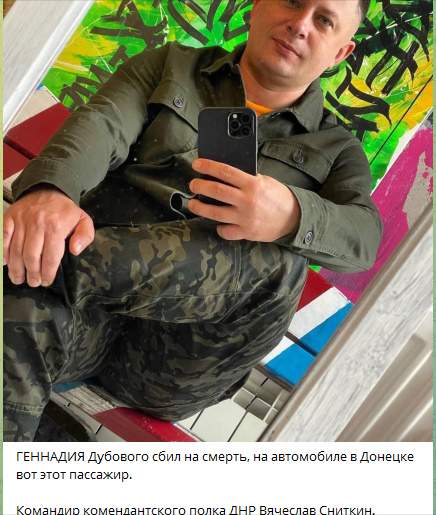 Еще нюанс: по сообщению ТГК «Тринадцатый», Дубового насмерть сбил командир комендантского полка ДНР Вячеслав Сниткин.