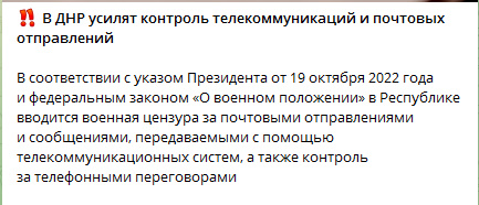 С утра 24 сентября 2023 г., практически вслед с заявлениями Лаврова на ГА ООН, появились распоряжения «властей Днр» (явно спущенные из Москвы) о усилении концлагерного режима для населения Донбасса. В частности: