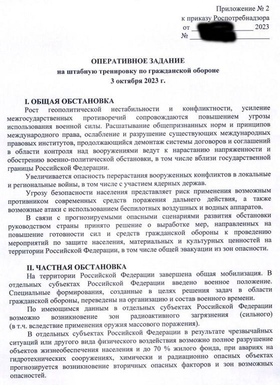 А вот сообщение ТГК Тайга гораздо интереснее. Канал опубликовал документ о проведении учений гражданской обороны на 3 октября. Сами по себе учения это очередная попытка напугать Запад призраком ядерной войны, мол, мы, если что, готовы, переживем как-нибудь. Примечательны вводные условия или легенда учений: