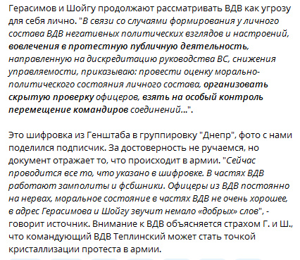 Крайними на этом этапе оказались десантники. Они и ранее высказывали недовольство по поводу кадровых решений МО и ГШ, ответом стали «мероприятия по усилению контроля».