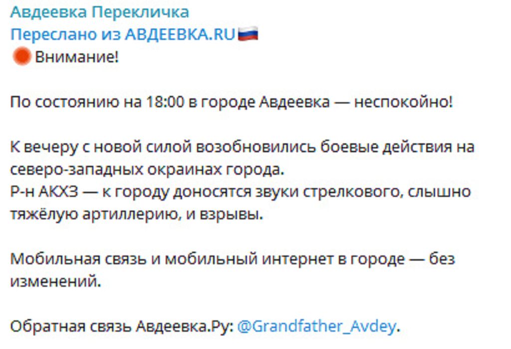 По ситуации в Авдеевке, с укр канала: