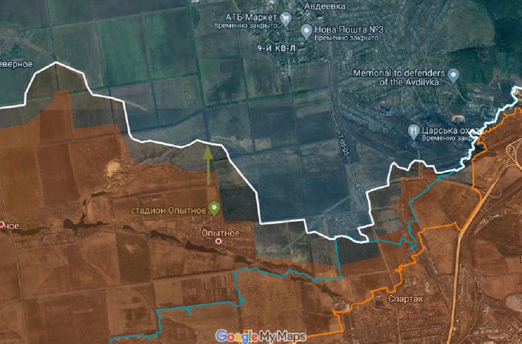 Несколько дней назад я писал о сильных артбоях в направлении Опытного. Как оказалось, части Днр/Рф прошли несколько сот метров от Опытного на север, приблизившись к юго-восточной окраине Авдеевки. Но надо учесть, что на этих позициях они уже были, потеряв их зимой-весной 2023г.