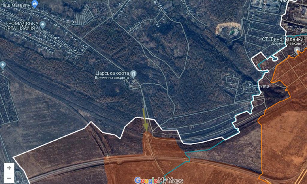 Ранее упоминалось о продвижении Днр на участке от Царской Охоты до части ПВО. Вчера укрсторона похвасталась успешной контратакой с направления ЦО в сторону мостов. По их информации, Всу заняли руины моста над ЖД Ясиноватая — Авдеевка.
