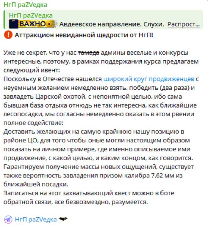 Вероятная причина — попытка создать угрозу отрезания от города опорнику Всу на донецкой фильтровальной станции, попутно спрямив периметр и получив использовать участок константиновской трассы как рокадную дорогу.
