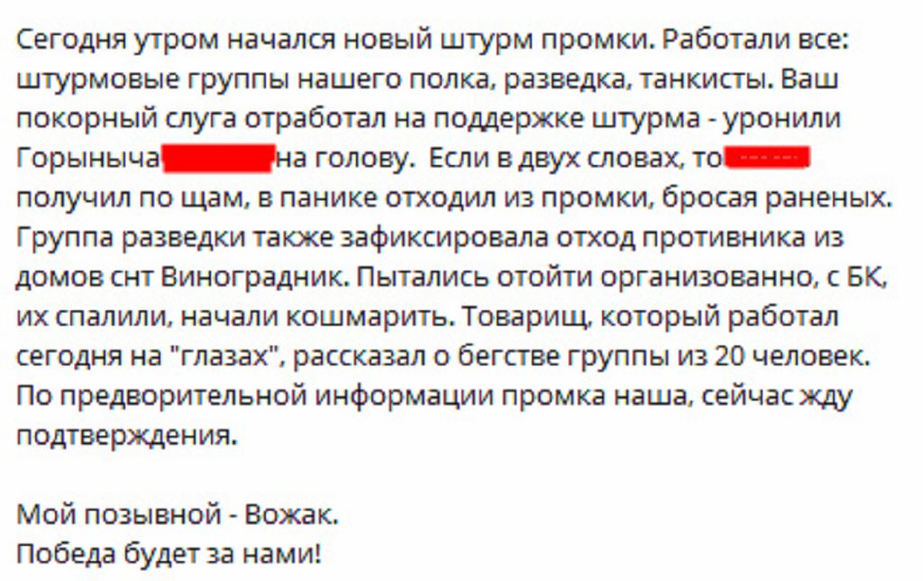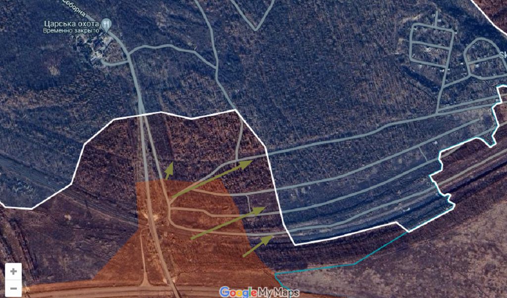 В этом районе части Днр/Рф сменили вектор атак, вместо движения на север, в направлении самой ЦО, повернули на восток, навстречу наступающим по Винограднику коллегам с ЯБП.