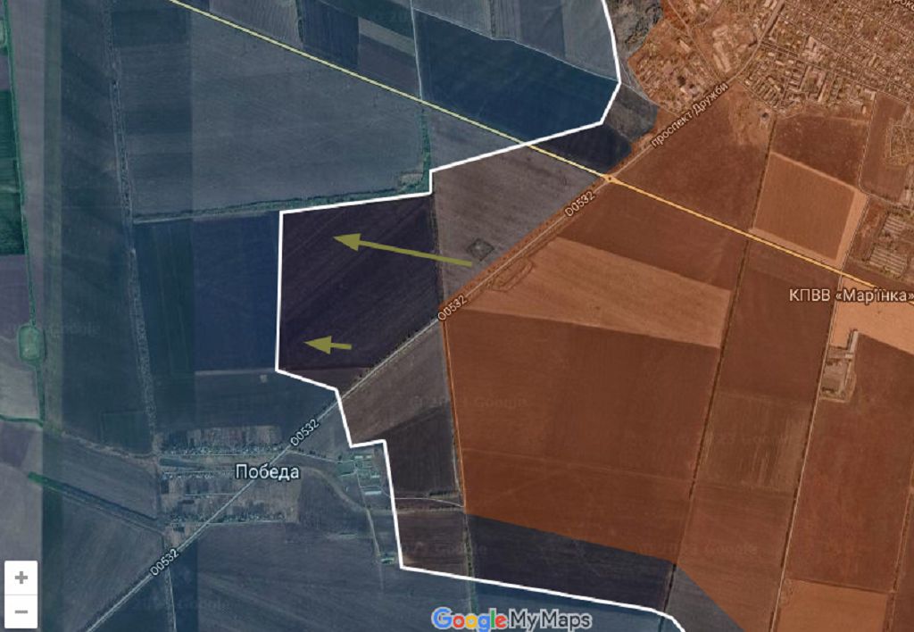 На этом участке Днр/Рф перешли трассу Марьинка — Угледар и обходят поселок Победа с севера.
