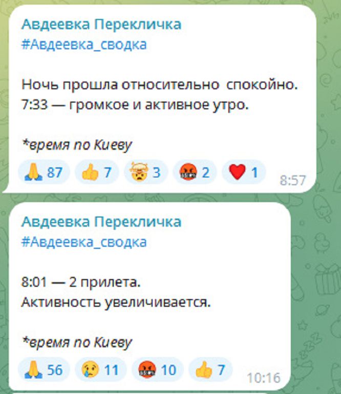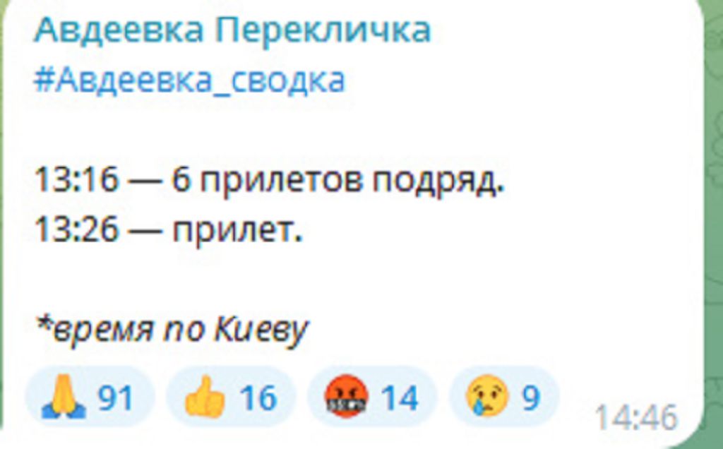 13.00 В первой половине дня прослушивалась активность арты на участке Опытное — Первомайское и на север от Авдеевки, скорее всего, Петровское. К обеду почти стихло, только в стороне Опытного — Северного глухие бахи, наверное, минометы.