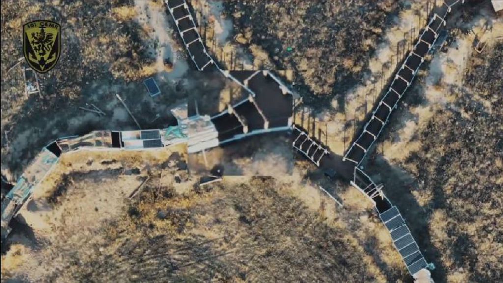 А это попытка самостоятельно решить проблему дронов, затруднив им обнаружение и сброс/подлет, устройством простейших перекрытий над траншеями. Ранее массово использовали сетку-рабицу (вследствие чего она стоит в Донбассе раза в 3 больше, чем в РФ), закидывая её ветками.