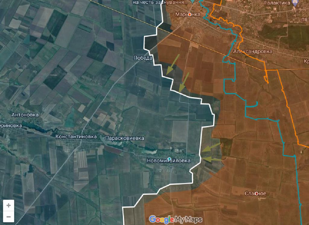 Продолжается обход поселка Победа с востока. Также сообщают о возобновлении атак на восточную окраину Новомихайловки.