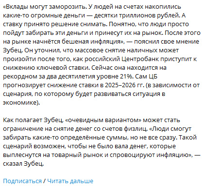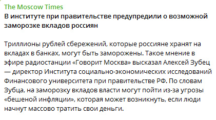 Не стоит забывать, СССР в свое время систематически кидал на бабки своих граждан. Начиная от облигаций и займов, заканчивая конфискационными реформами. Так что опыт грабежа народа у власти богатый, а арсенал методов и средств завидный. А ввиду санкций и в инвалюту не особо сбежишь.