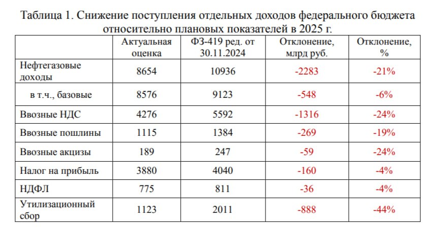 🤩 Наглядная таблица, составленная экспертами ЦМАКП, о потерях федерального бюджета в текущем году.