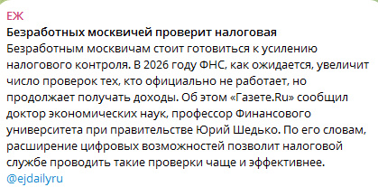 Цитата: Администратор от 28.11.2025, 00:48В этом никто и не сомневался. Проверять и контролировать это все, что власти остается...