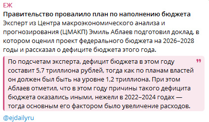 Цитата: Администратор от 24.11.2025, 16:42Вот и запели финансы романсы...