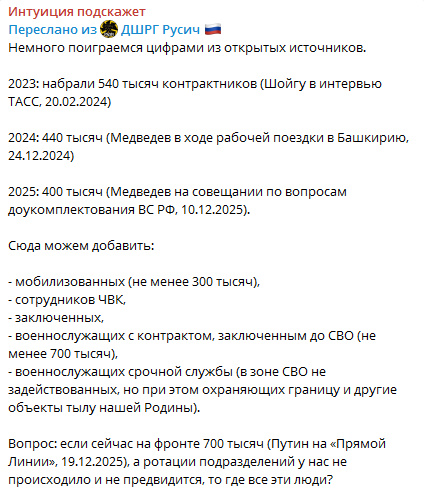 "Башни Федерации" (https://t.me/federation_towers/17238)о главном тренде уходящего в прошлое 2025-го года — Система РФ все сильнее пожирает своих же и от преследования мало кто сумеет: