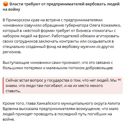 Ожидаемо. Но рисковать стабильностью режима, запуская всеобщую могилизацию, не стали, поэтому вот так, в мясорубку войны мелкими порциями.