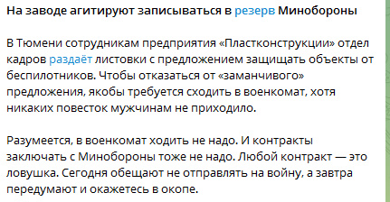 Похоже, это не единичное, а системное явление. Но потребность в живой силе на фронте никуда не делась, значит, вместо контрактов будет принудительные формы могилизации.