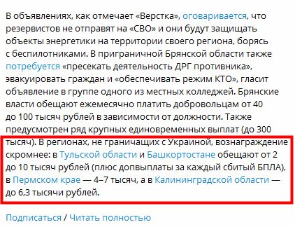 Власти регионов продолжают (https://t.me/mobilizationnews/23996) резко снижать выплаты за контракт