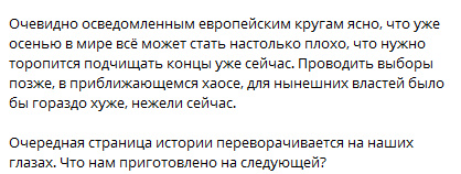 Вот тогда и начнется решающее давление. Как управляемый "черный лебедь" для запуска внутренних процессов в России. Просто потому, что завоевывать Рф в классическом понимании некому, даже частичная оккупация потребует мобилизации в странах НАТО, на что их власти вряд ли пойдут.
