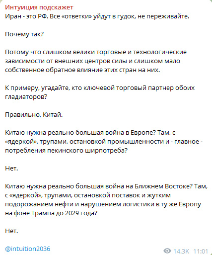 Цитата: Администратор от 12.06.2025, 10:12О ситуации вокруг Ирана, Израиля и США.
