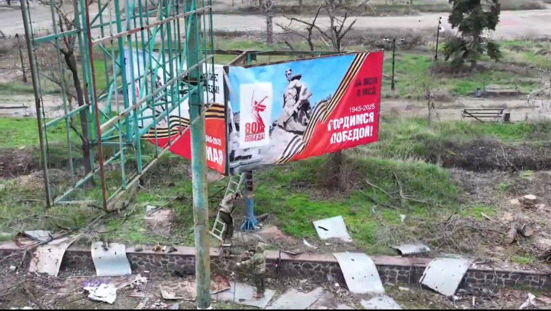 Цитата: Администратор от 23.04.2025, 05:25Пишут, в Артемовске начали развешивать плакаты к 9 мая. На фоне тотально разрушенного города такая пропаганда выглядит откровенным сюрреализмом...