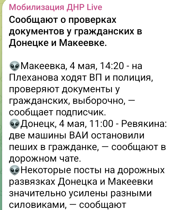 Цитата: Администратор от 31.05.2025, 02:05В Макеевке 30 мая прошла очередная облава, на этот раз на Объединенном.