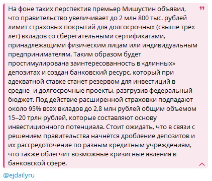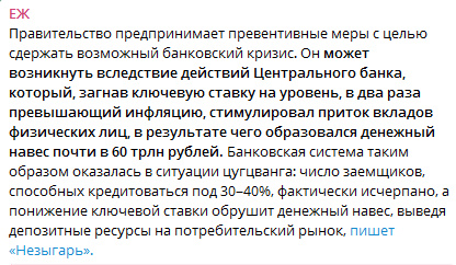 Цитата: Администратор от 25.04.2025, 19:32Практически это попытка отложить решение вопроса с банковскими вкладами на будущее. А там, чего доброго, они и сами обнулятся. Например, инфляцией, как советские...
