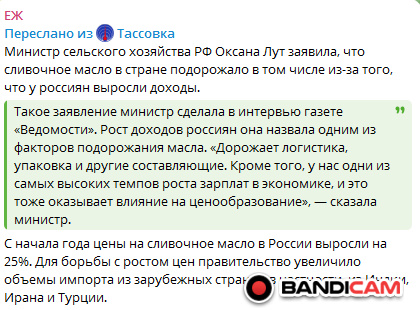 Цитата: Администратор от 06.11.2024, 23:45Как всегда, виновато неправильное население, жрет масло в три горла...