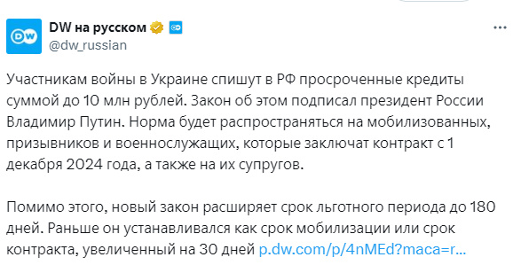 - в бюджете денег на очередное повышение прямых выплат за контракт, похоже, нет, раз придумали схему со списанием долгов. И я так понимаю, оплачивать банкет будут банки. Благо у них с прибыльностью пока неплохо. Т е банки, явно не по своему желанию, нагнули на непрямое дополнительное финансирование войны.