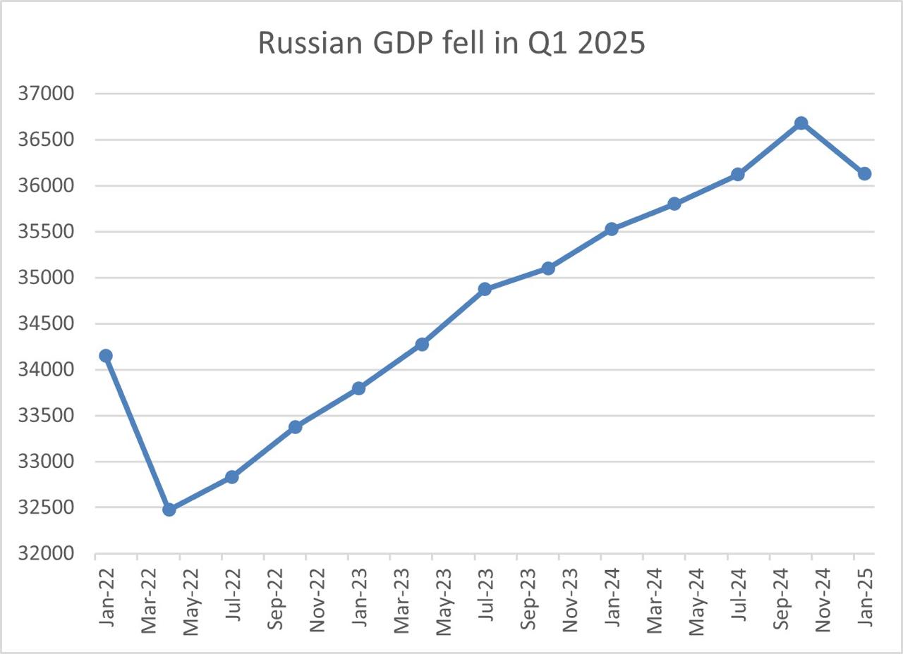Цитата: Администратор от 06.05.2025, 20:44Российская экономика закончила квартал падением впервые с 2022 года