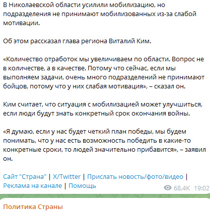 Вероятно, они еще и знают, что мобилизация идет недостаточными темпами, о чем стали говорить украинские военные и политики, что еще больше намекает на необходимости снижать возраст и мобилизовать всех, кого можно, чтобы достичь плановых показателей.