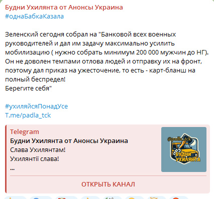 «Картины «бусификации» на концерте «Океана Эльзы» вряд ли будут способствовать поднятию боевого духа в обществе. Скорее усилят чувство страха перед будущим, ощущение полной беззащитности, побудит еще тысячи мужчин залечь на дно, либо попытаться уехать из страны. Что же касается эффекта для пополнения армии, то он от таких мероприятий близок к нулю. Люди, которые сидят по ночным клубам, имеют деньги, чтоб на любом этапе отмазаться от мобилизации, даже после того, как их силой привели в ТЦК. А если даже их как-то смогут забрать в армию, то у них точно будут деньги, чтоб откупиться от отправки на передовую. Система коррумпирована сверху донизу. И в этом главная проблема. Но эту проблему решать нет желания. Проще организовать показательные выступления военкомов перед концертом «Океана Эльзы» или устроить рейд по ночным клубам и ресторанам. Заодно и их владельцев обилетить можно», - говорит источник. https://t.me/stranaua/172508